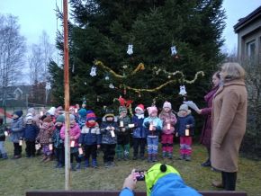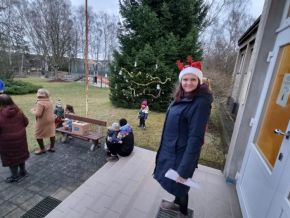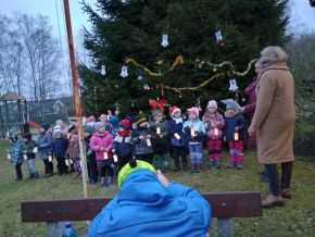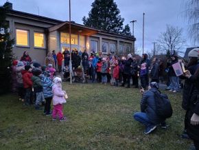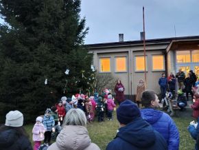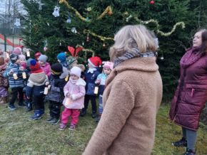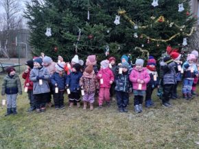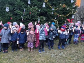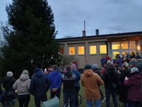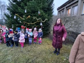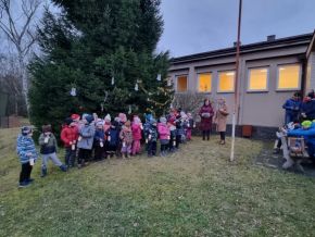 Zpívání vánočních koled u stromečku na školní zahradě