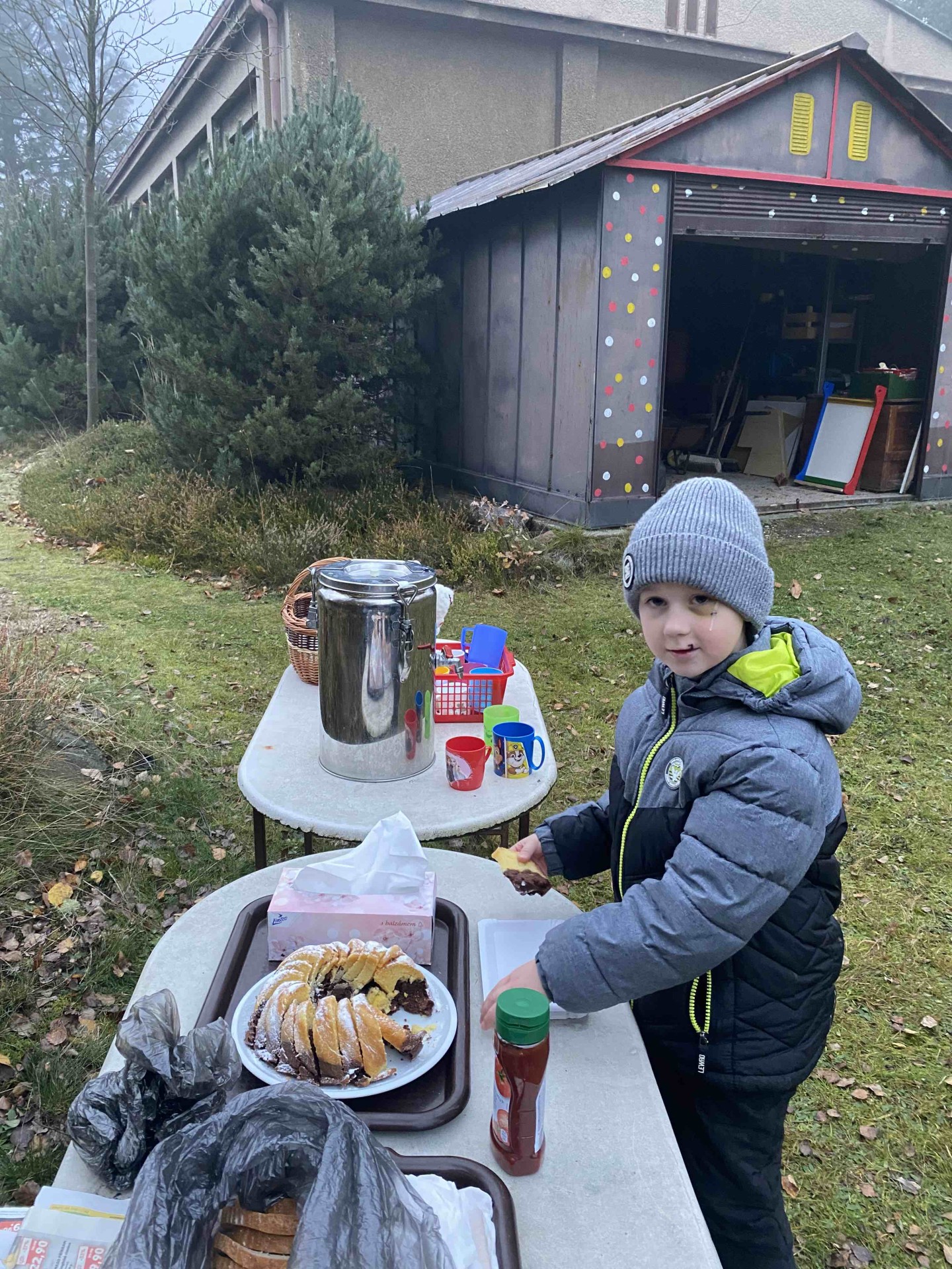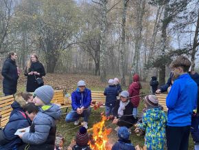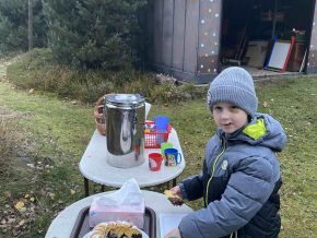 Opékání buřtů na školní zahradě (sovičky)