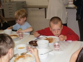 Oběd předškoláků ve školní jídelně ZŠ