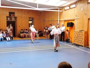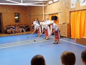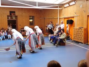 Ve čtvrtek 12. 6. 2025 naši školu v rámci Mezinárodního folklorního festivalu Cioff Plzeň 2025 poctil svojí návštěvou folklorní soubor Nashenci z města Stara Zagora z dalekého Bulharska. Soubor Nashenci při výchovném koncertu prezentoval našim žákům a pedagogům pestrost rytmů, tanečních kroků, lidových krojů a také krásu bulharské lidové hudby. Po strhujícím energickém vystoupení následoval taneční workshop, během kterého si mohli žáci vyzkoušet a naučit se variaci jednoduchých tanečních bulharských kroků za doprovodu bulharské muziky.